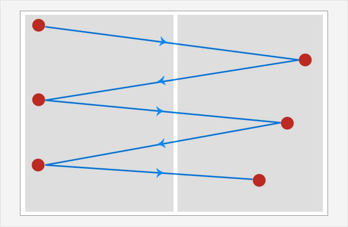 虽然一开始听起来很傻,但这种基本布局非常有效。当我们浏览一页时,我们的眼睛通常会沿着之字形移动。并且如果用户的视线像在Z 布局中一样沿着水平线—— 移动,那么他/她正在注意(或试图集中注意力)。但由于90% 的第一次访问您网站的用户不会非常仔细地关注您的页面,因此让您的设计“对浏览器友好”一定会获得丰厚的回报!