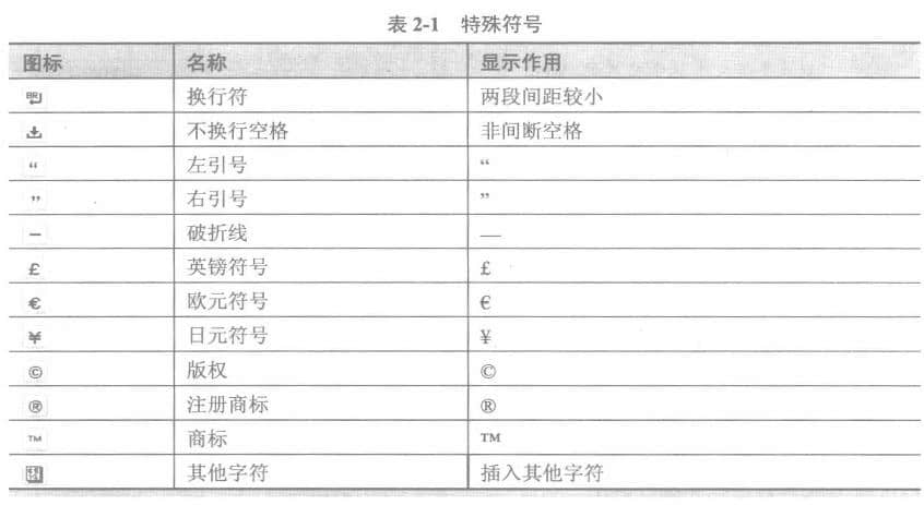 在网页中,有些特殊符号需要经常使用,如注册商标符号()、货币符号()等,直接用键盘输入比较麻烦。而Dreamweaver提供了各种特殊字符和符号,其中特殊字符包括标准7位ASCII码字符集之外的字符,如表2-1所示。
