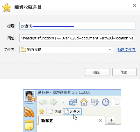 将上面的js代码添加到你的书签中。当需要查询pr的网址时,点击书签即可: